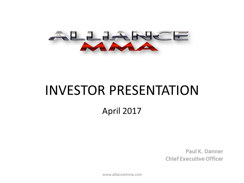www.alliancemma.com INVESTOR PRESENTATION April 2017 Paul K. Danner Chief Executive Officer