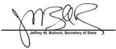 AND I DO HEREBY FURTHER CERTIFY THAT THE EFFECTIVE DATE OF THE AFORESAID CERTIFICATE OF INCORPORATION IS THE FIFTEENTH DAY OF FEBRUARY, A.D. 2015.