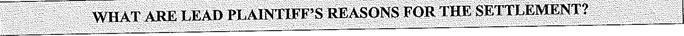J. Based upon their investigation, prosecution, and mediation of the case, Lead Plaintiff and Lead Counsel have concluded that the terms and conditions of this Stipulation are fair, reasonable and adequate to Lead Plaintiff and the Settlement Class, and in their best interests. Based on Lead Plaintiff’s direct oversight of the prosecution of this matter and with the advice of his counsel, Lead Plaintiff has agreed to settle and release the Released Plaintiffs’ Claims (as defined below in ¶ 1(mm)) as against Defendants pursuant to the terms and provisions of this Stipulation, after considering, among other things: (i) the financial benefit that the Settlement Class will receive under the proposed Settlement; and (ii) the significant risks and costs of continued litigation and trial.