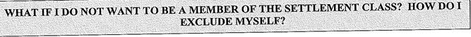 lfyou are a Settlement Class Member and wish to exclude yourself from the Settlement Class, you must submit a request for exclusion such that it is received no later than June 8, 2022, in accordance with the procedures described in the Notice. If you properly exclude yourself from the Settlement Class, you will not be bound by any releases, judgments or orders entered by the Court in the Action and you will not be eligible to share in the net proceeds of the Settlement. Excluding yourself is the only option that allows you to be part of any other current or future lawsuit against Defendants or any of the other released parties concerning the claims being resolved by the Settlement. Please note, however, if you decide to exclude yourself from the Settlement Class, you may be time-barred from asserting the claims covered by the Action by a statute of repose.